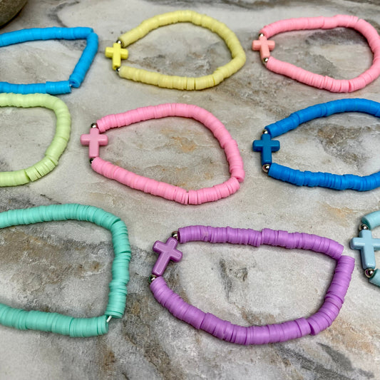 Bracelet - Clay + Bead - Easter Religious Cross Pastel Colors