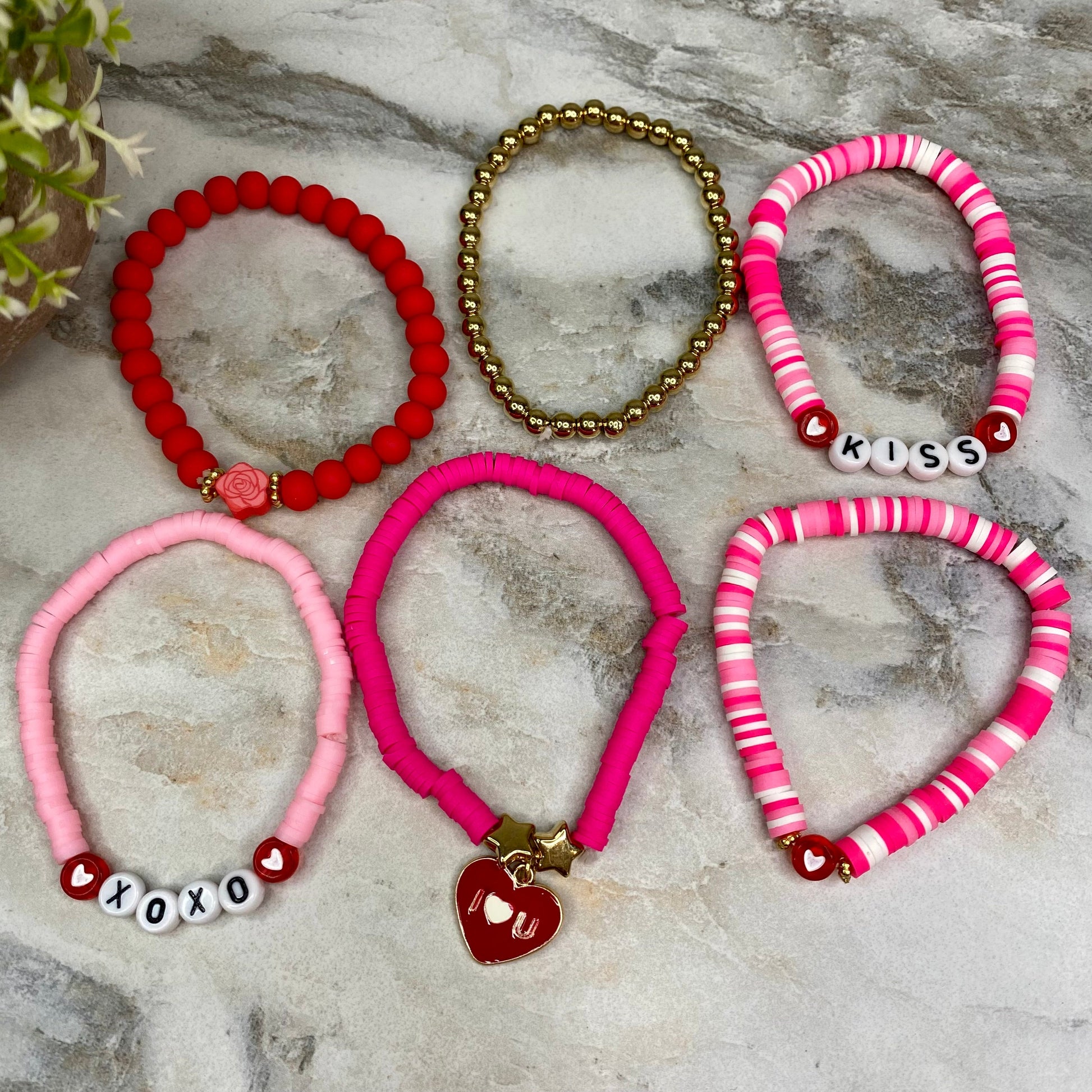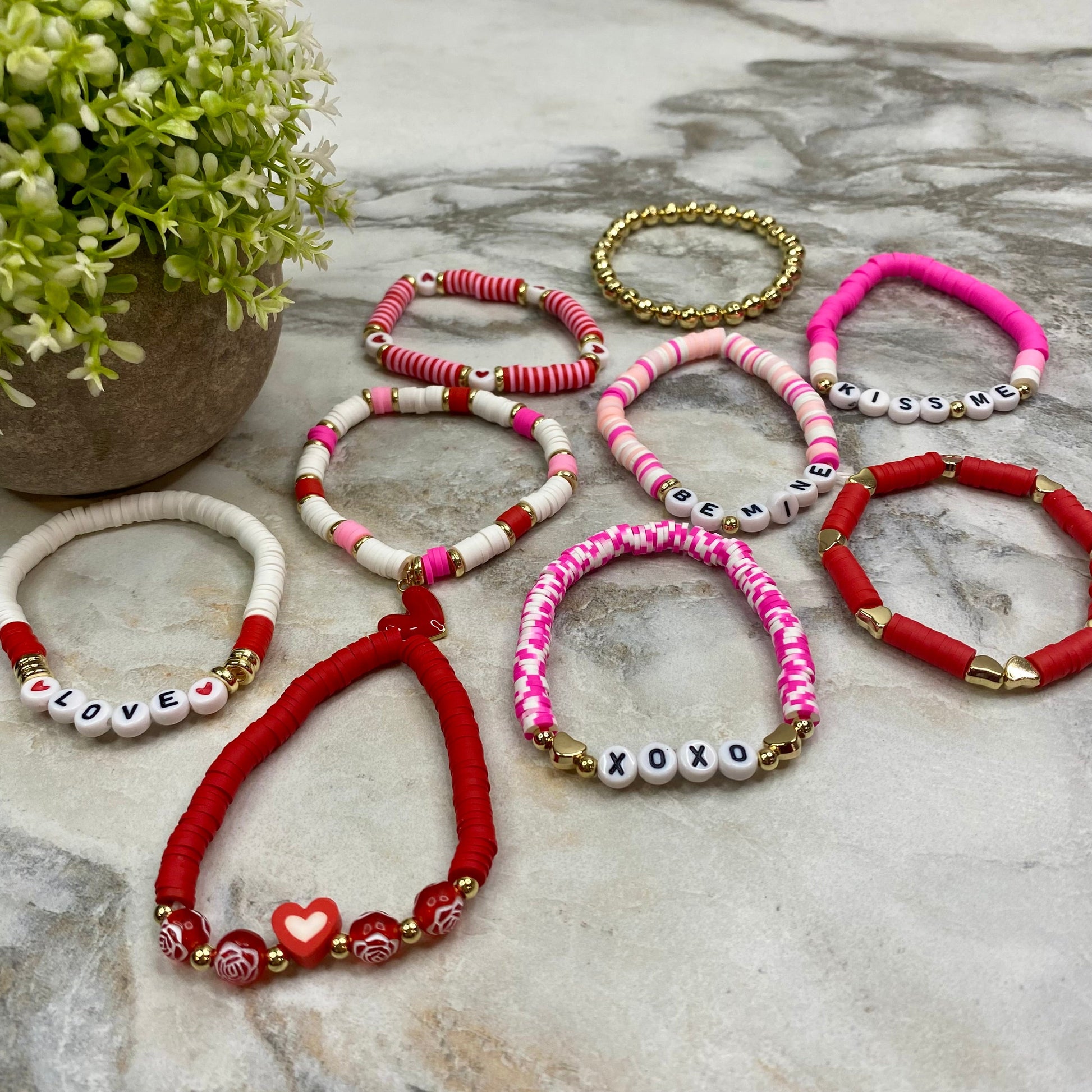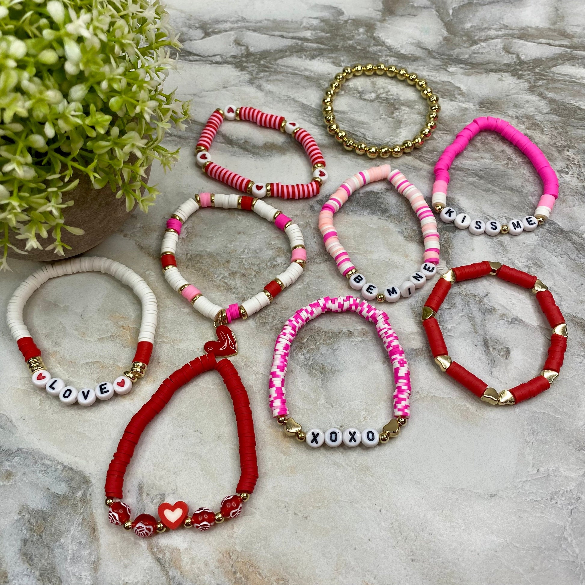 Bracelet - Clay + Bead - Love Red & Pink Mix