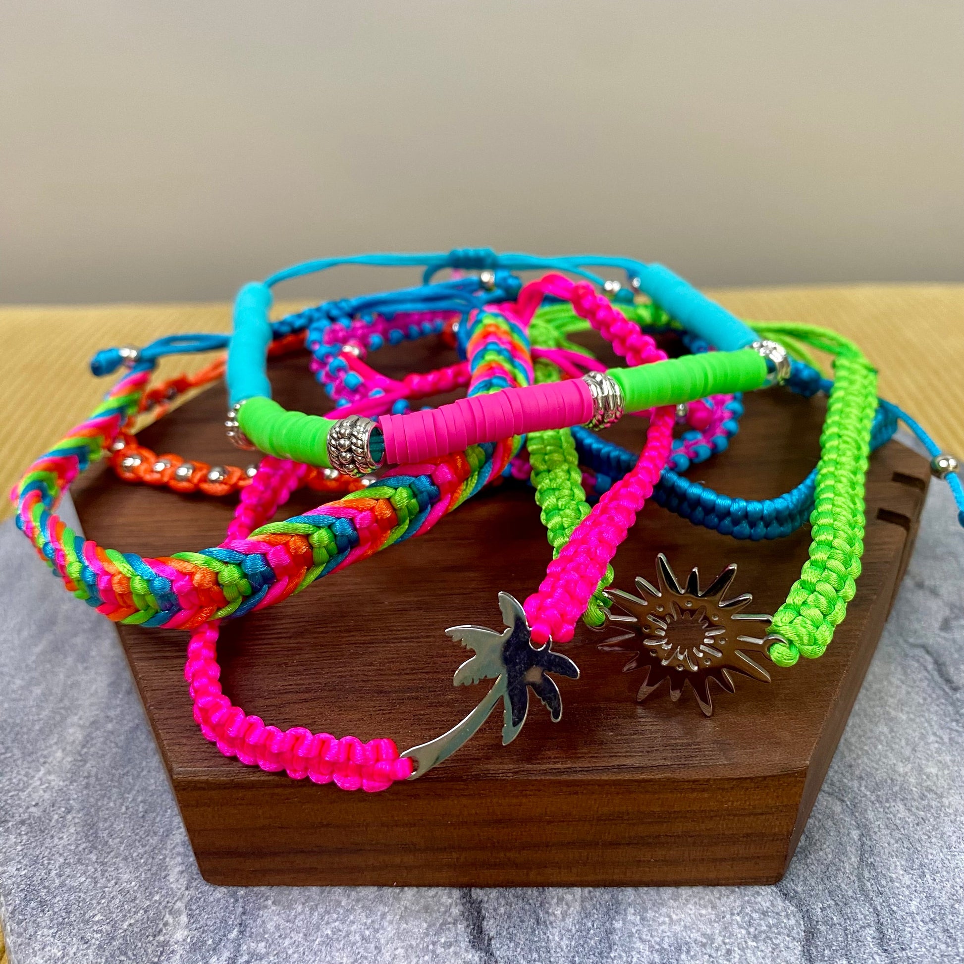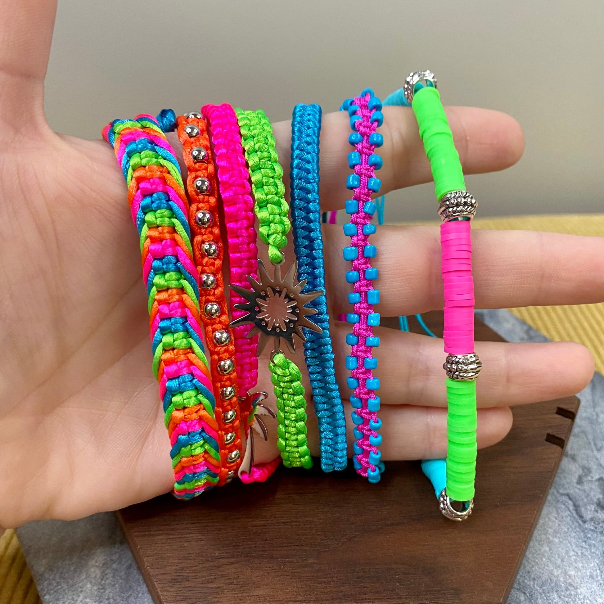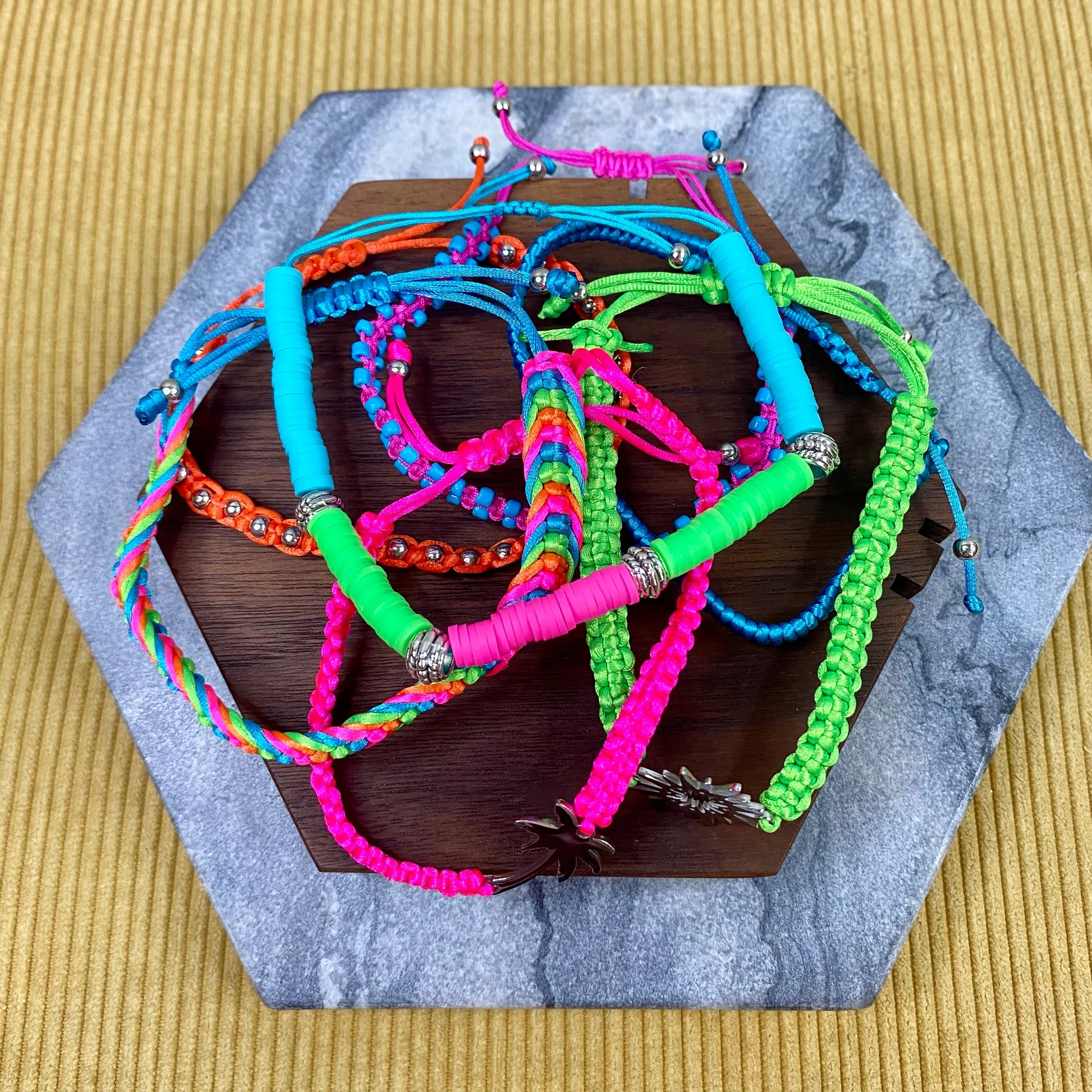 Bracelet Pack - Adjustable String Pink Orange Blue Green