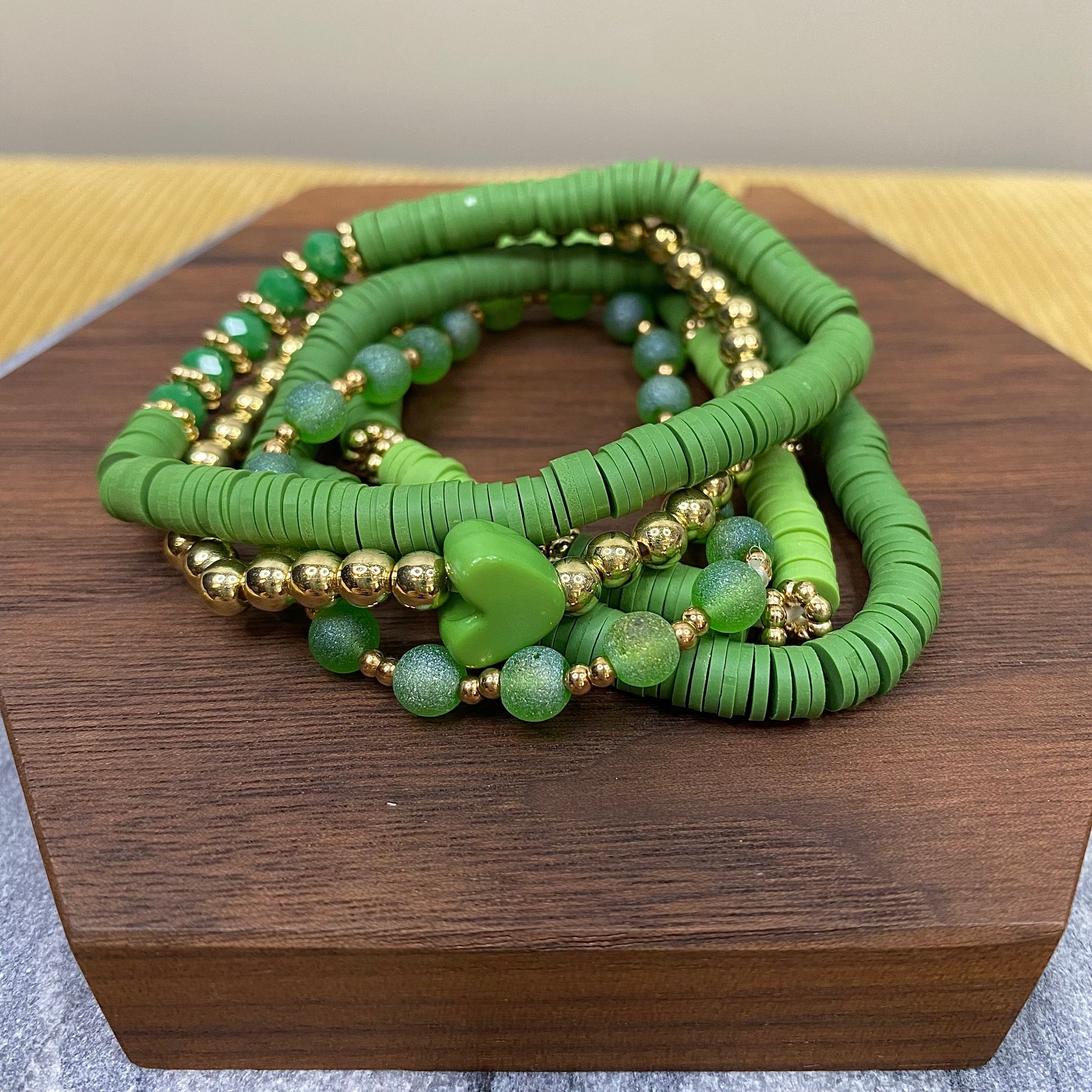Bracelet Pack - Clay & Gold Bead - Green