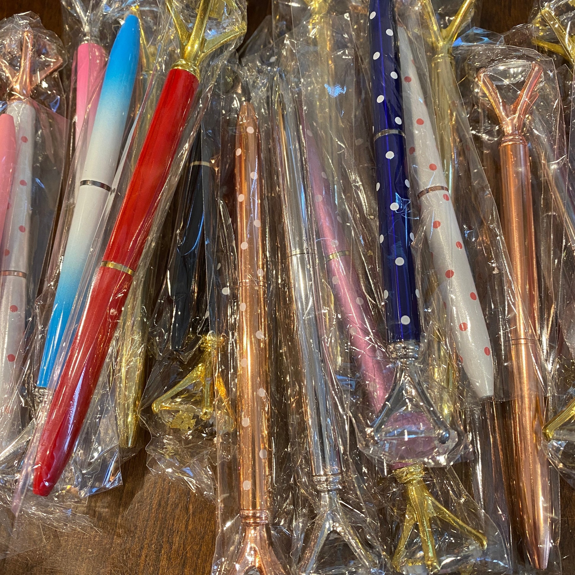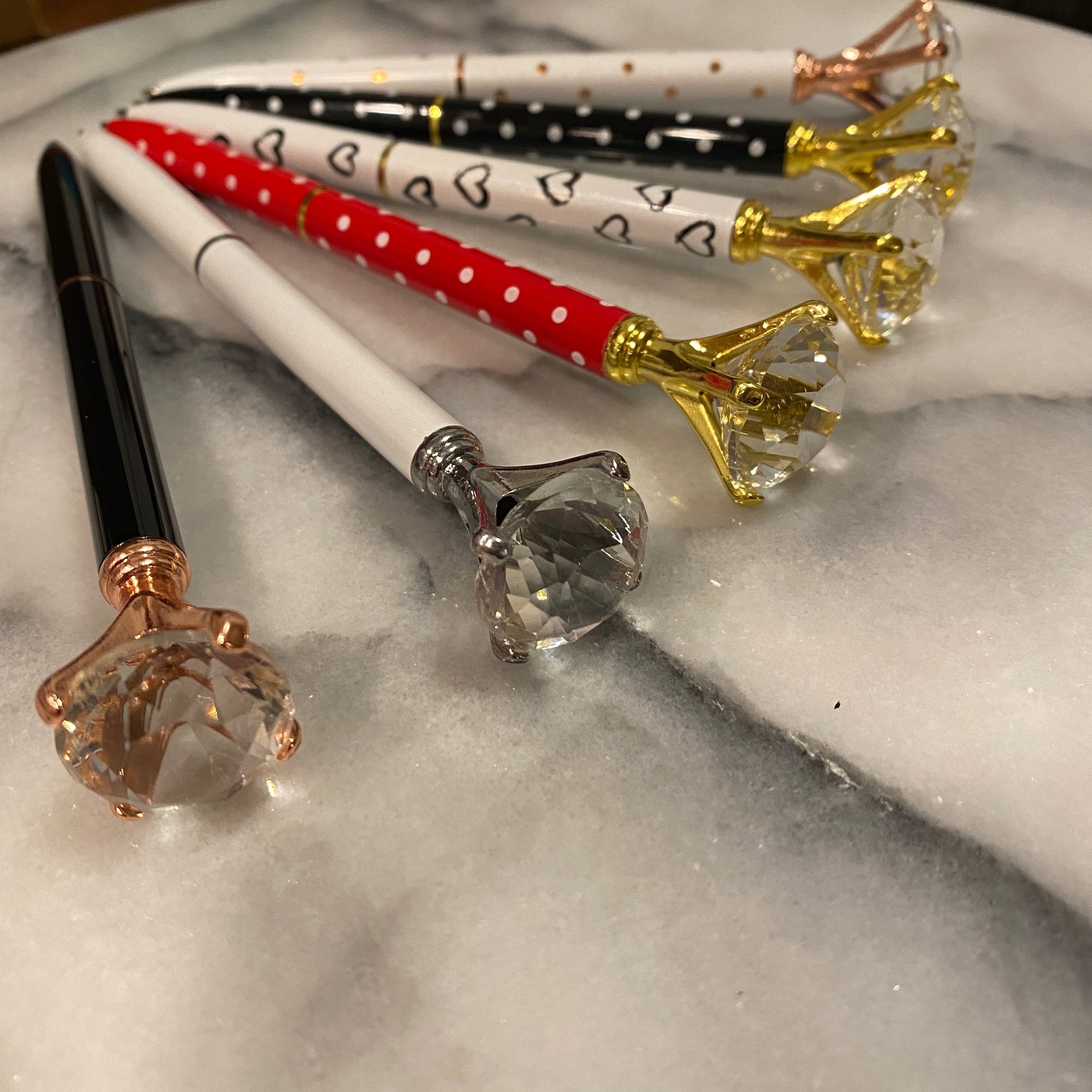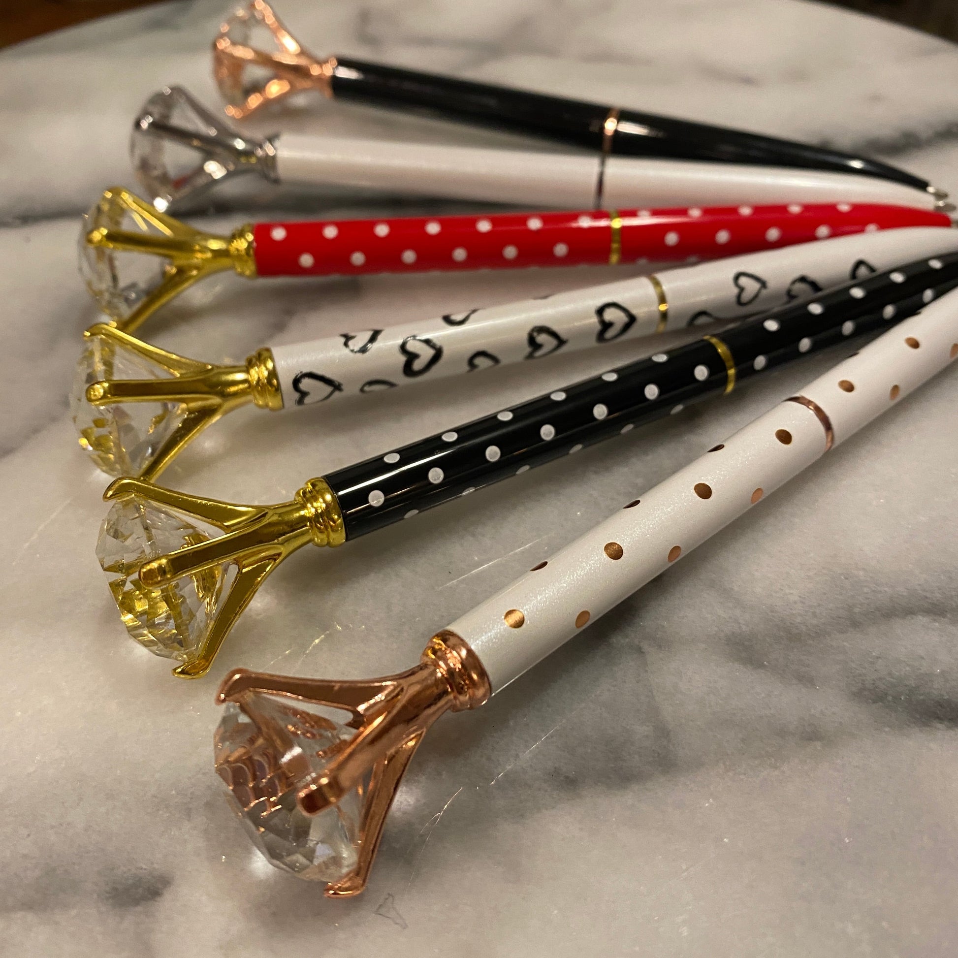 Gorgeous metal pen with a faux diamond on top!
