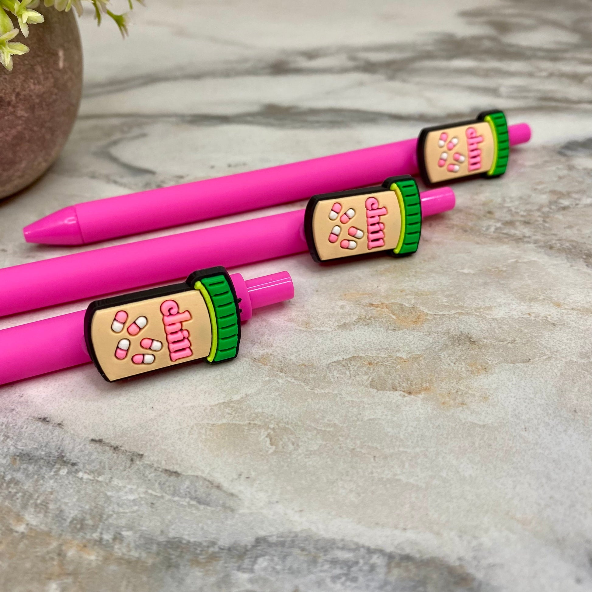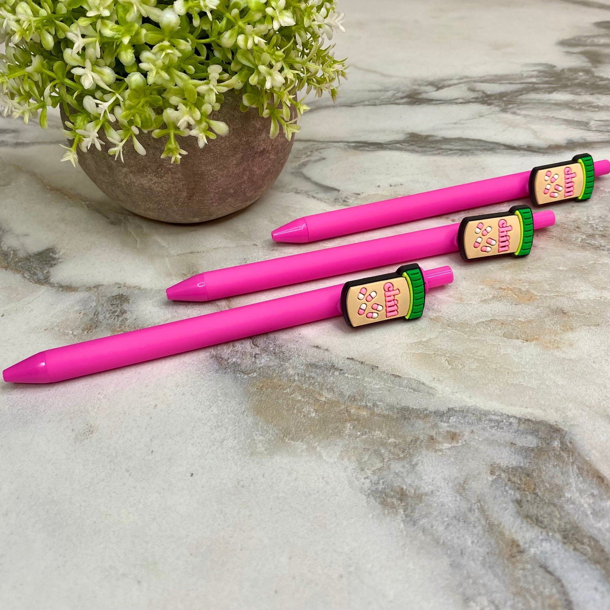 Adorable click pens. Approx. 6” long, ballpoint, black ink, silicone. Sold individually.