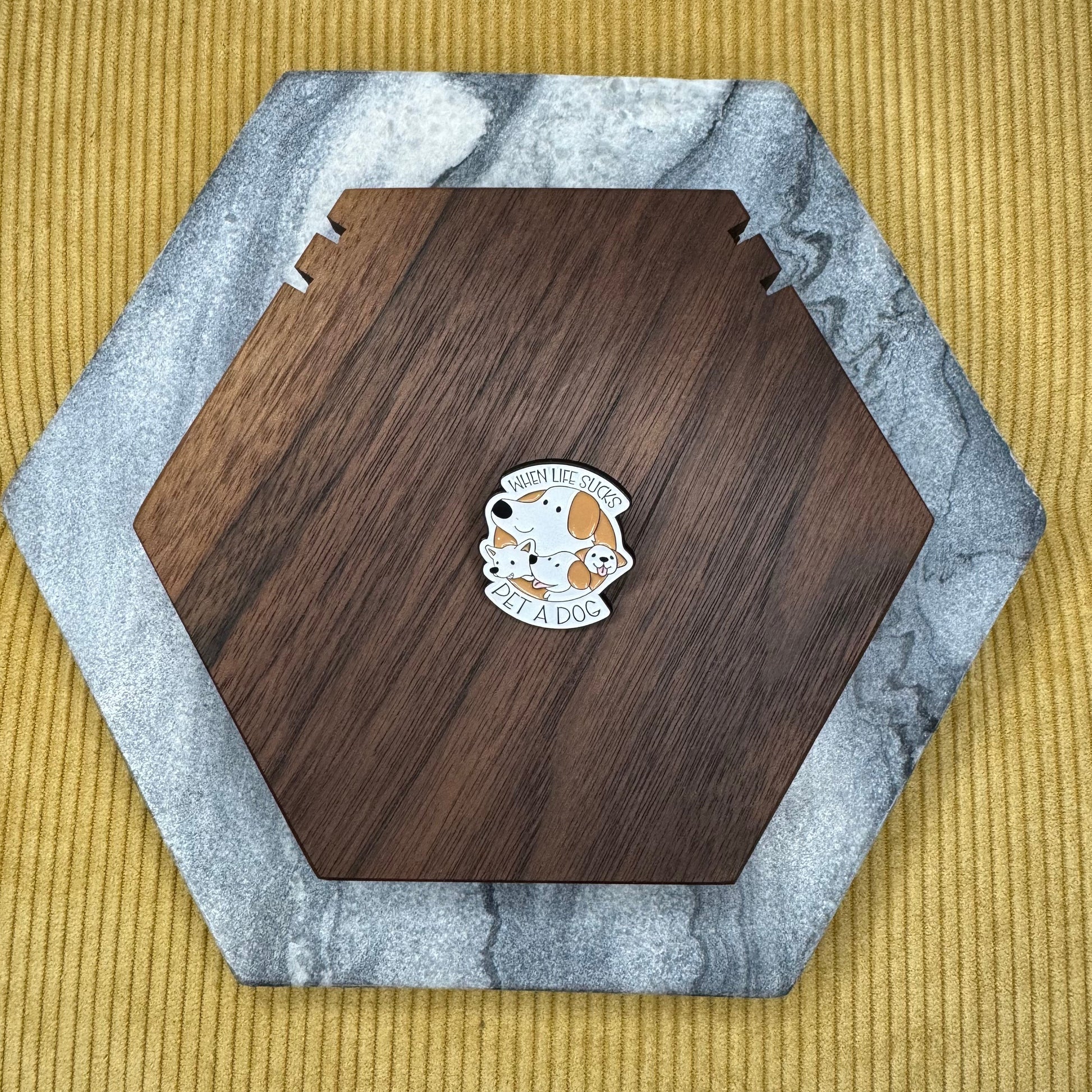 Metal pin, rubber backing.
