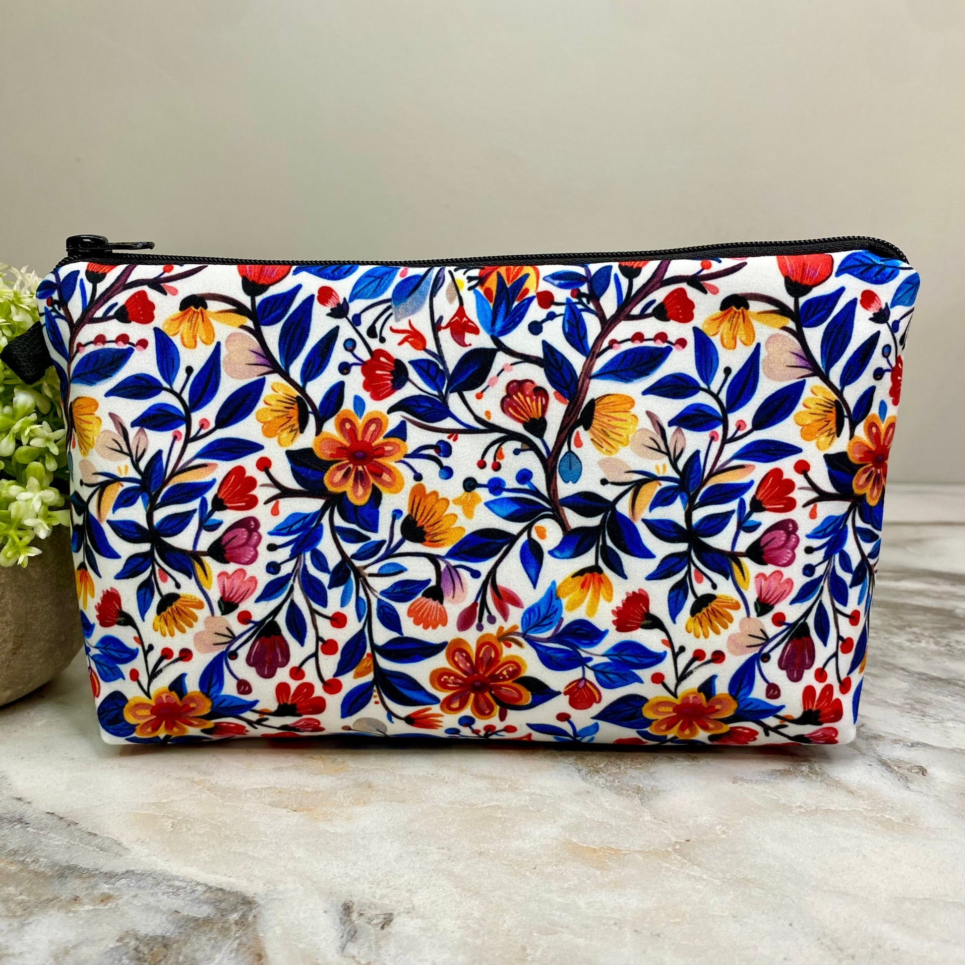Pouch - Floral Leaves Red Yellow Blue