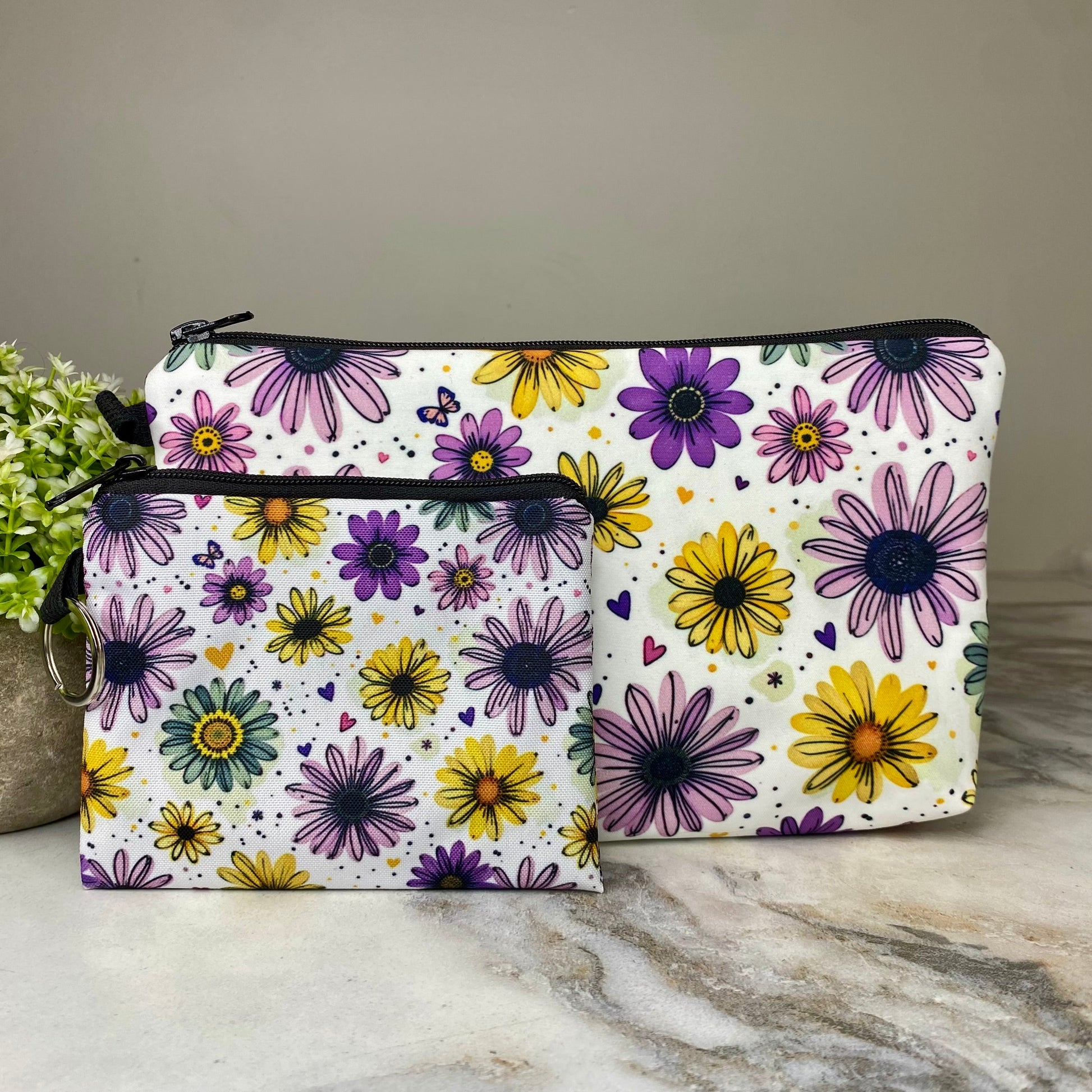 Pouch & Mini Pouch Bundled Set - Floral Teal Purple Yellow