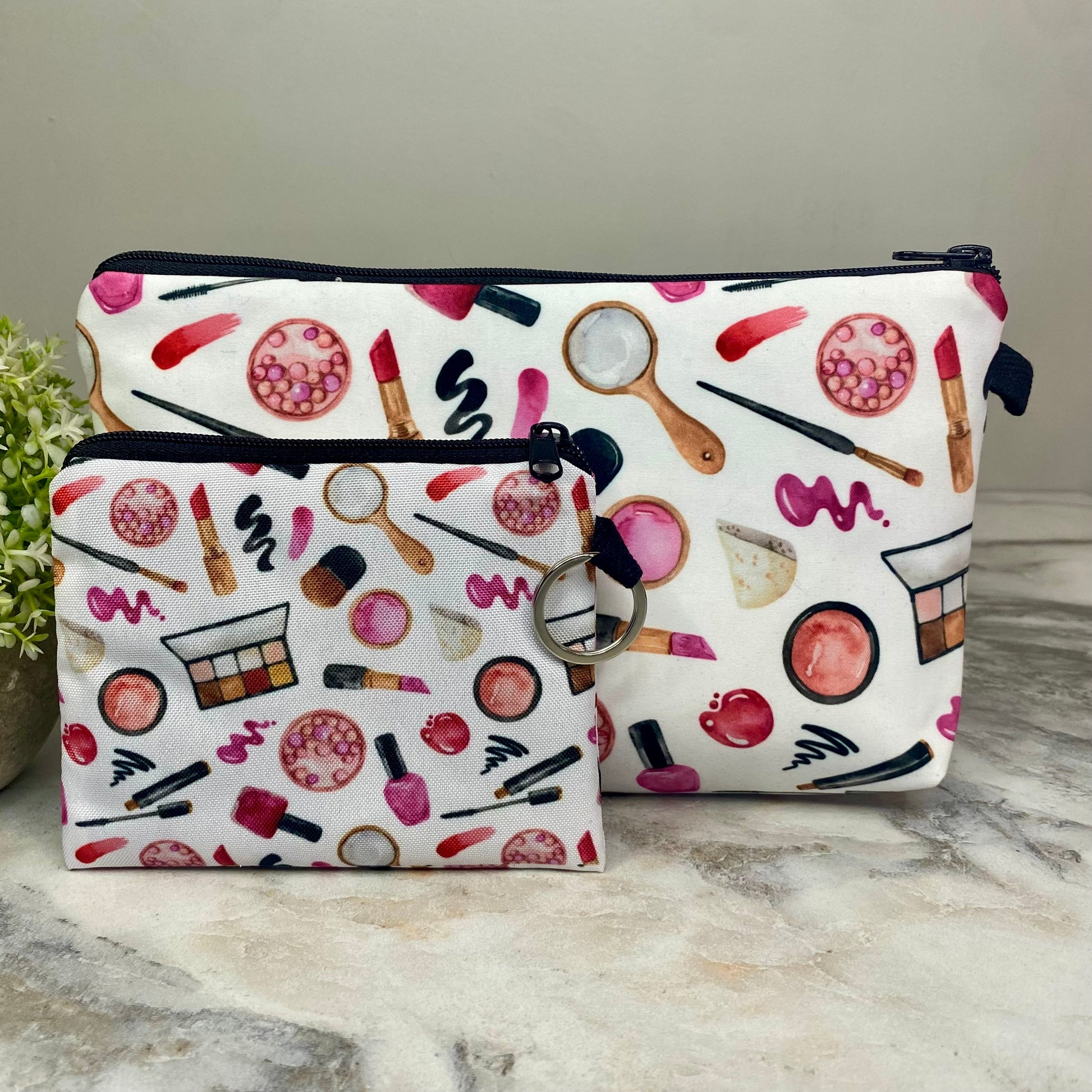 Pouch & Mini Pouch Bundled Set - Makeup Lipstick Eye Shadow on White