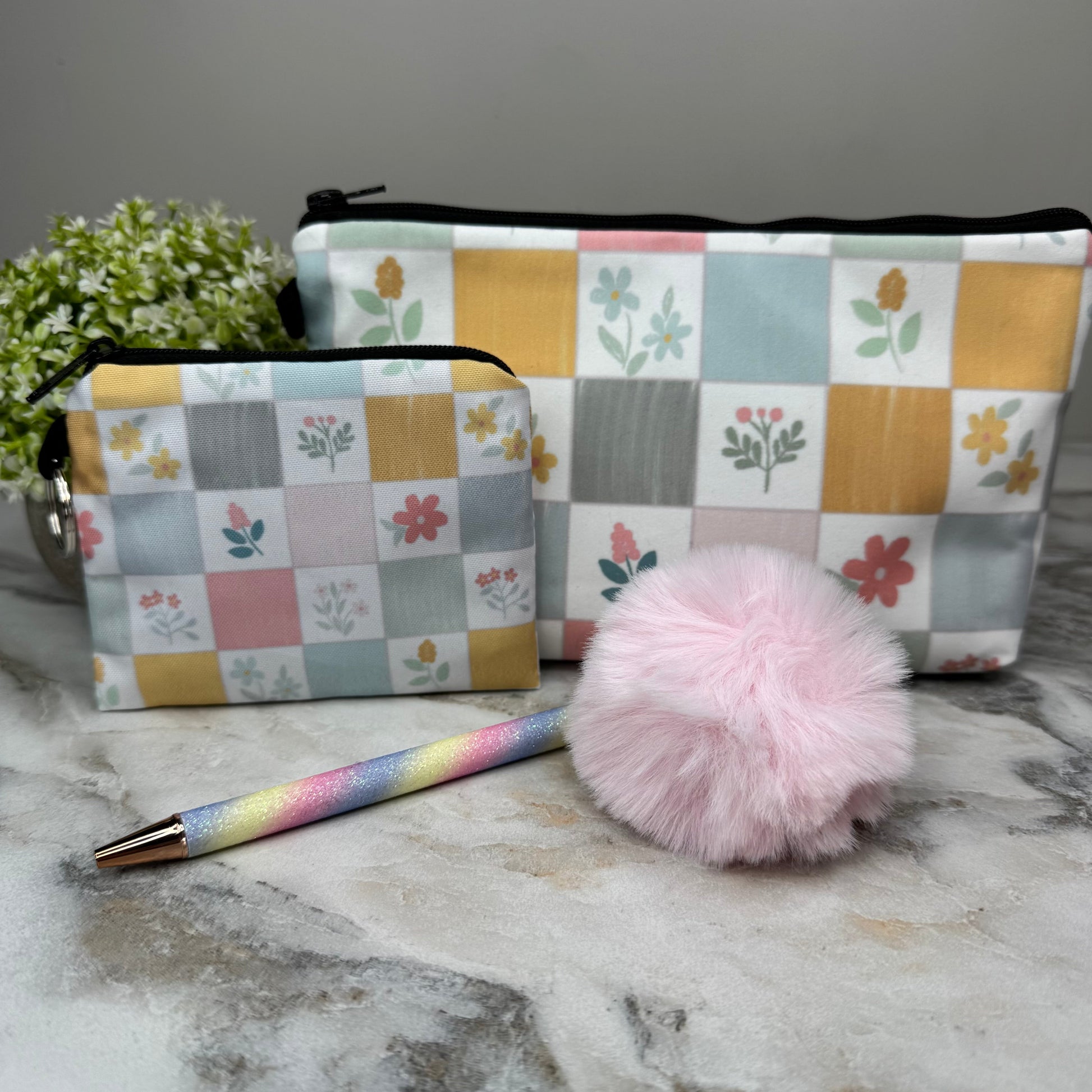 Pouch, Mini Pouch, Pom, & Pen Bundled Set - Spring Floral Pastel Patches