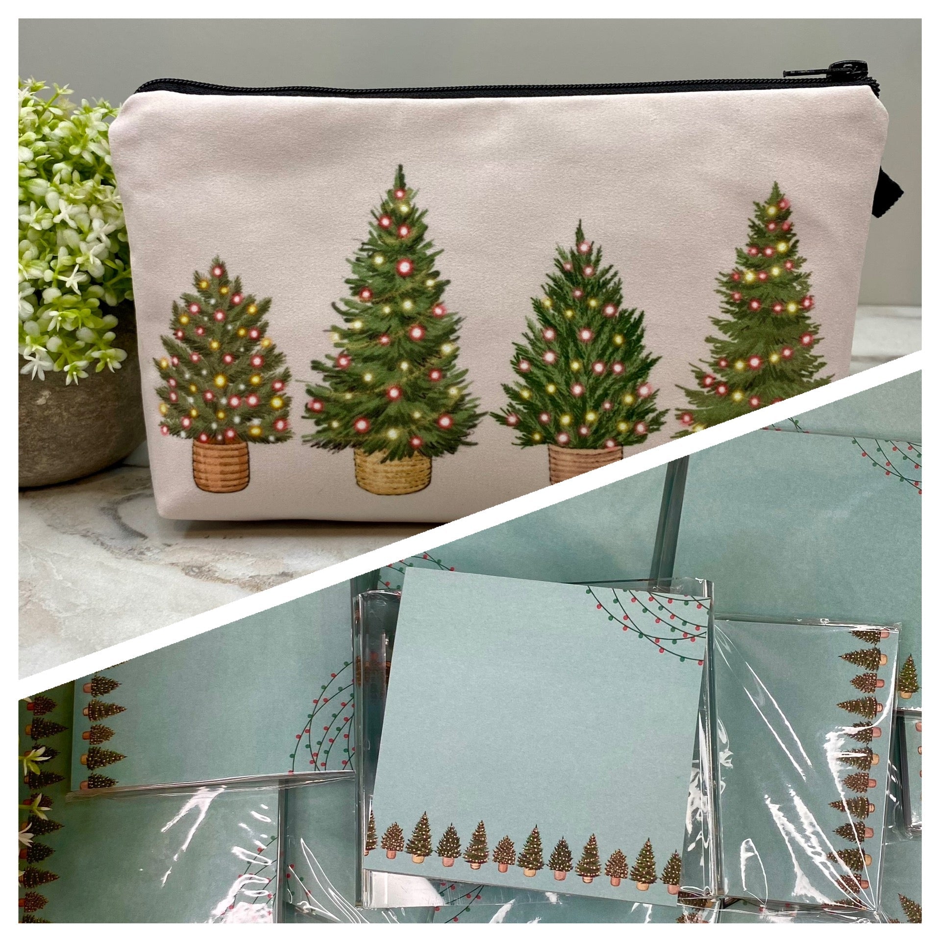 Pouch & Sticky Note Bundled Set - Christmas Trees