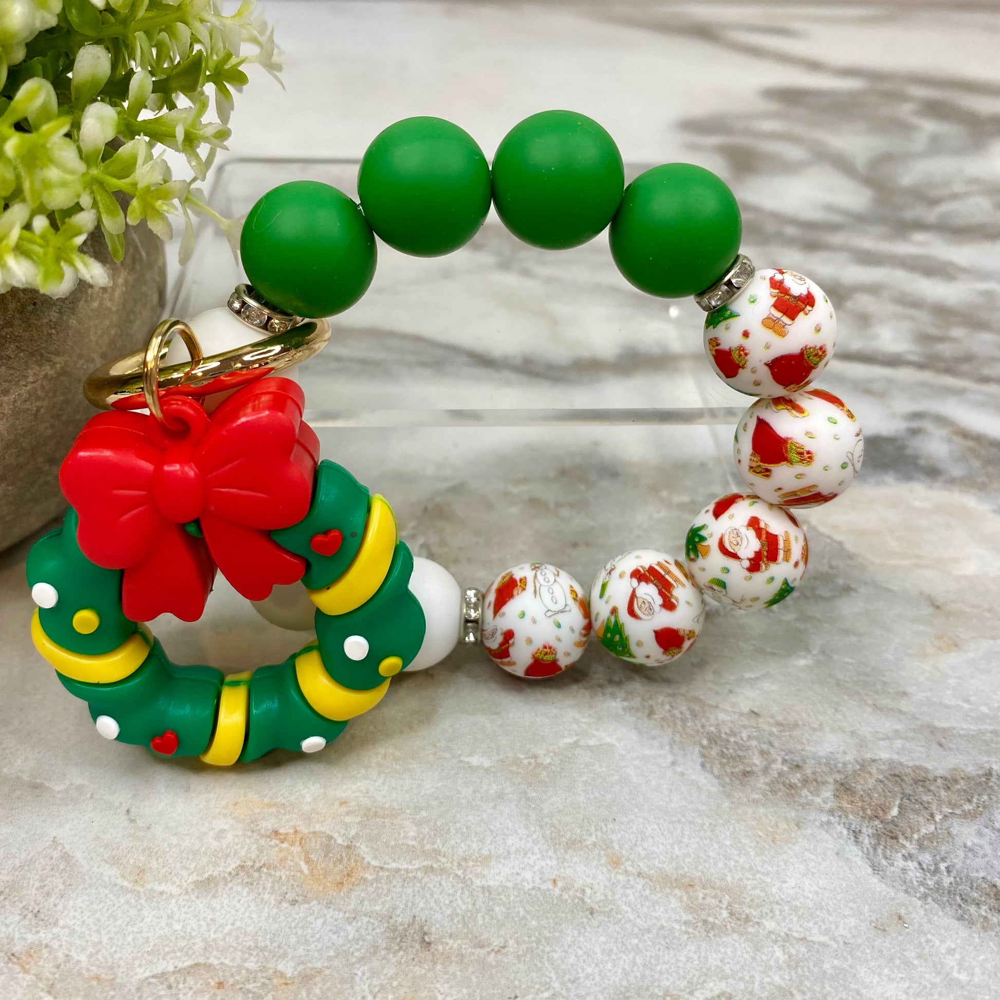 Silicone Bracelet Keychain - Christmas Winter - Wreath