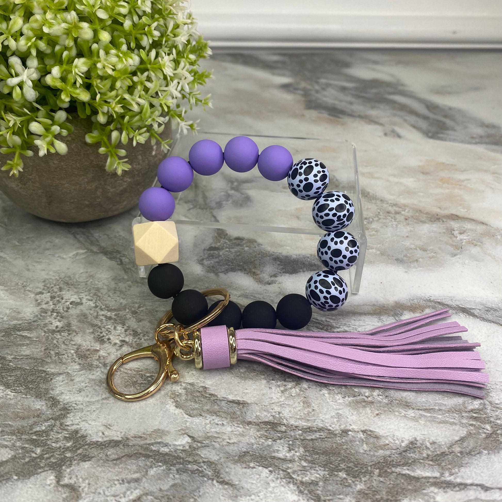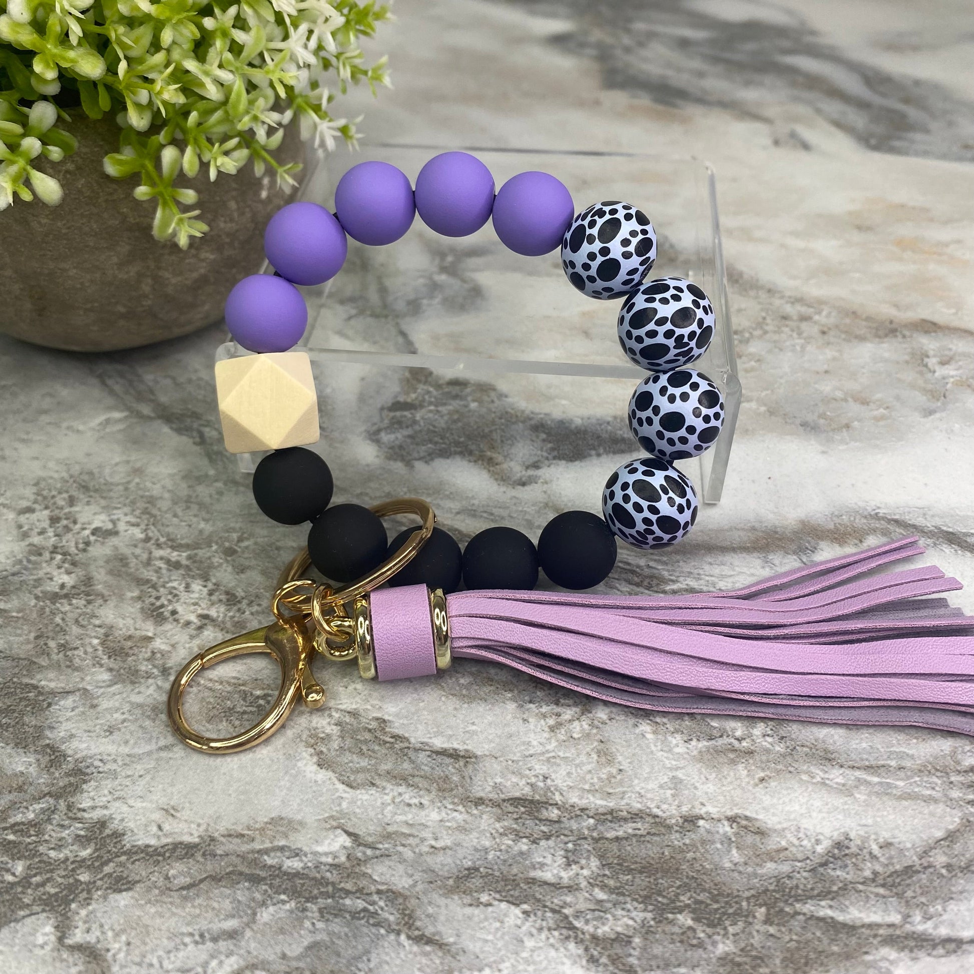 Silicone/Wood Bracelet Keychain - Paw - Purple