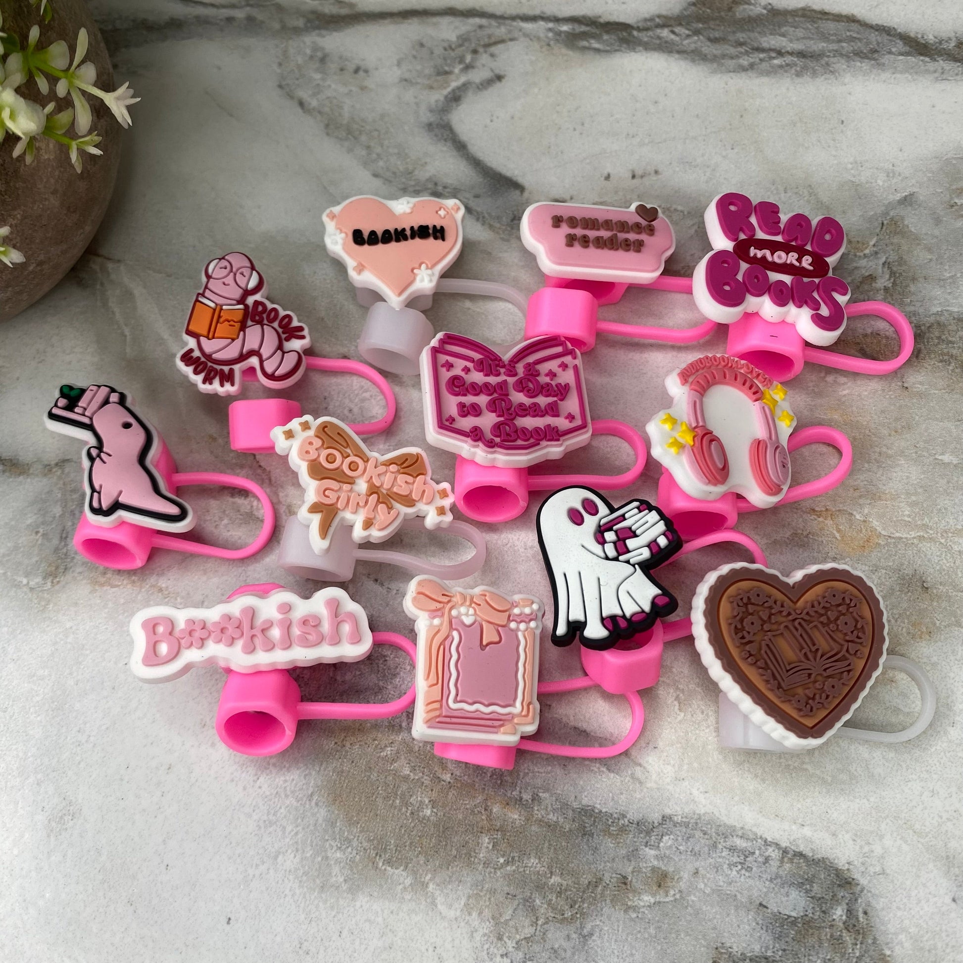 Silicone Straw Toppers Tumbler - Book Pink Tan Mix