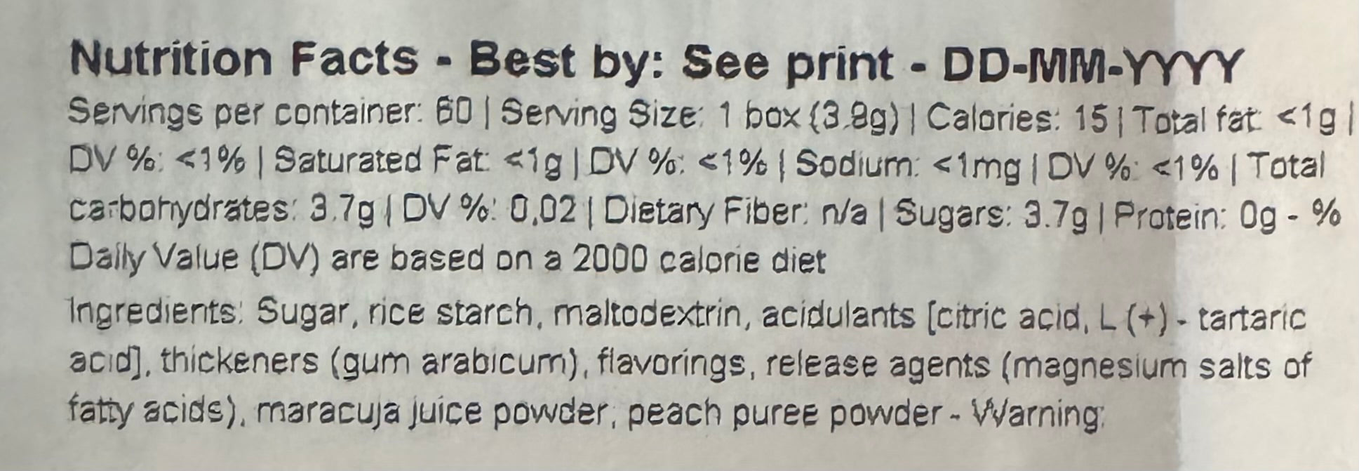 A random selection of flavors: Mint, Orange, Peach & Passionfruit, Spearmint, Strawberry Sweet, Strawberry Sour .