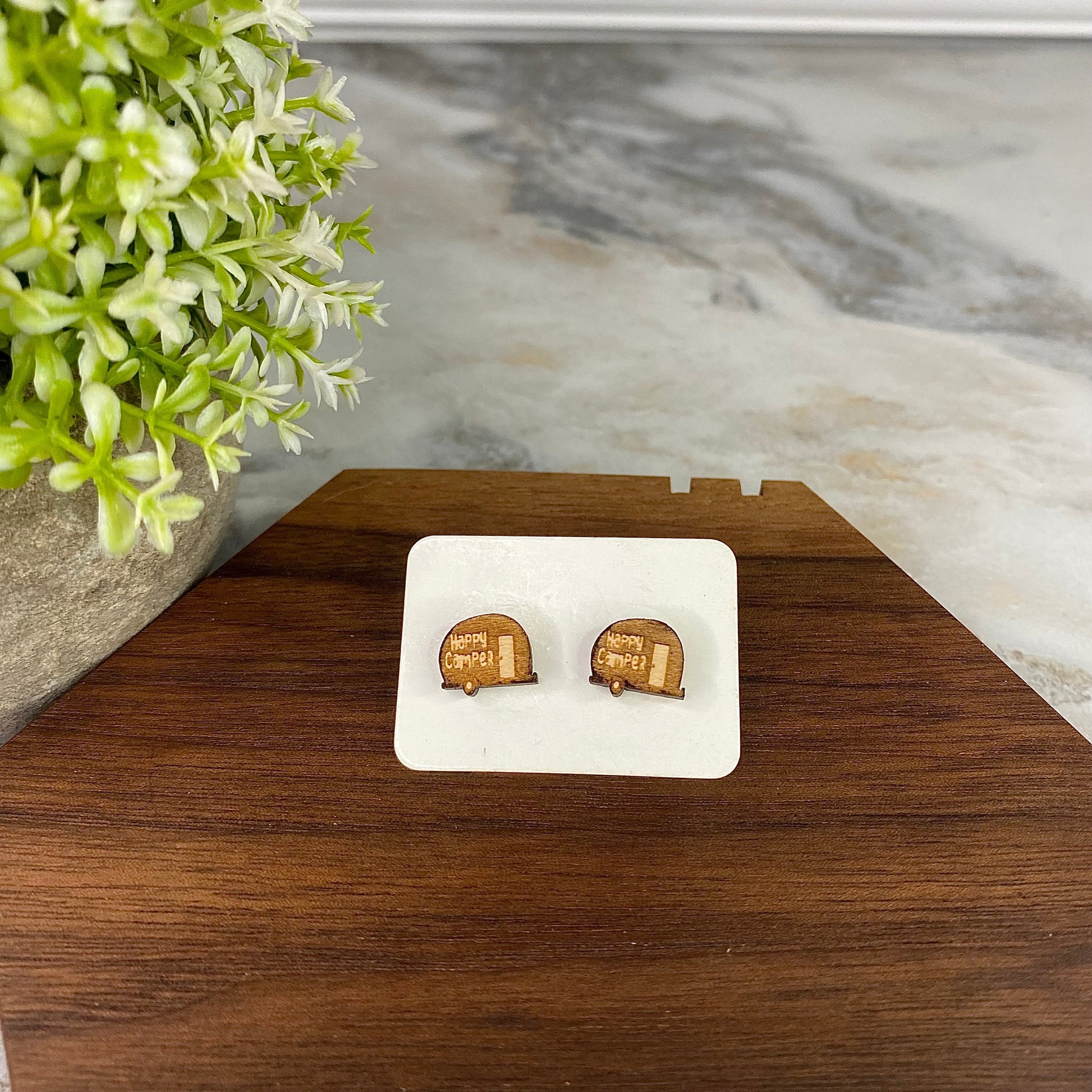 Wooden Stud Earrings - Happy Camper
